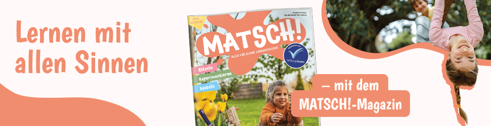Wir empfehlen das Magazin ab 5 bis ca. 11 Jahre. Vorschulkinder entdecken MATSCH! an der Seite ihrer Begleitperson, während Kinder im Grundschulalter das Magazin später auch eigenständig lesen und erleben können.